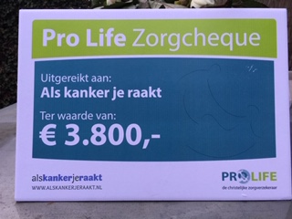 Op die dag mocht de directeur van Als kanker je raakt, Rita Renema de Pro Life Zorgcheque in ontvangst nemen.
