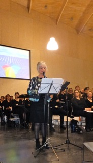 Elise Mannah en haar pianist namen ons mee in een muzikaal intermezzo. Het leek of Elise tegen de zaal sprak en dat de woorden schijnbaar moeiteloos overgingen in een prachtig lied.