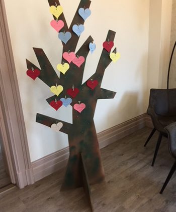 Na een woord van welkom was er een gedachte rond wat het verlies van een kind met je doet. Als beeldtaal werd een boom gebruikt. Daarin kreeg elk kind een symbolisch plaatsje. Ouders hingen een papieren hartje aan de boom waarop ze de naam van hun kind hadden geschreven. Dat moment zette de toon van de dag: het zijn onze kinderen die ons samenbrengen.
